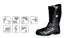 • cuir noir pleine fleur traité waterproof, épaisseur de 2,4–2,6 mm, tige sans coutures latérales, fils à coudre résistants à la chaleur (Nomex), bandes et bises réfléchissantes